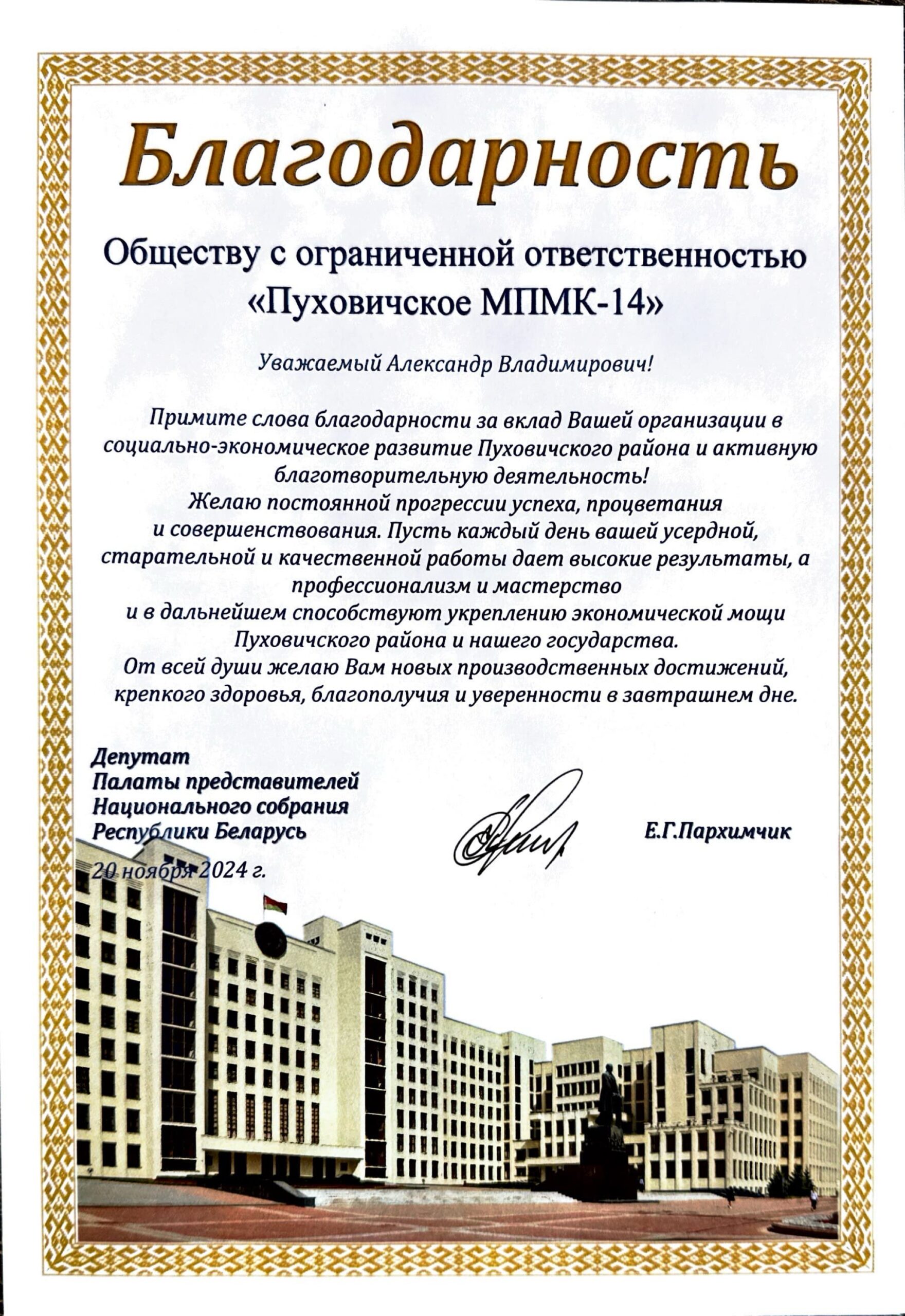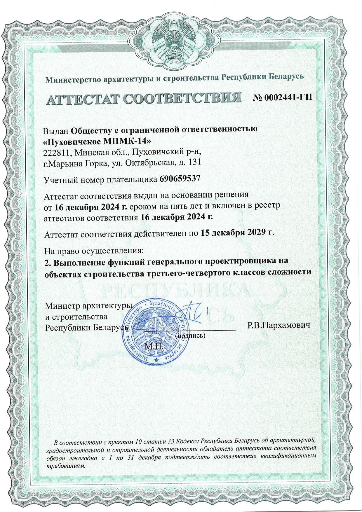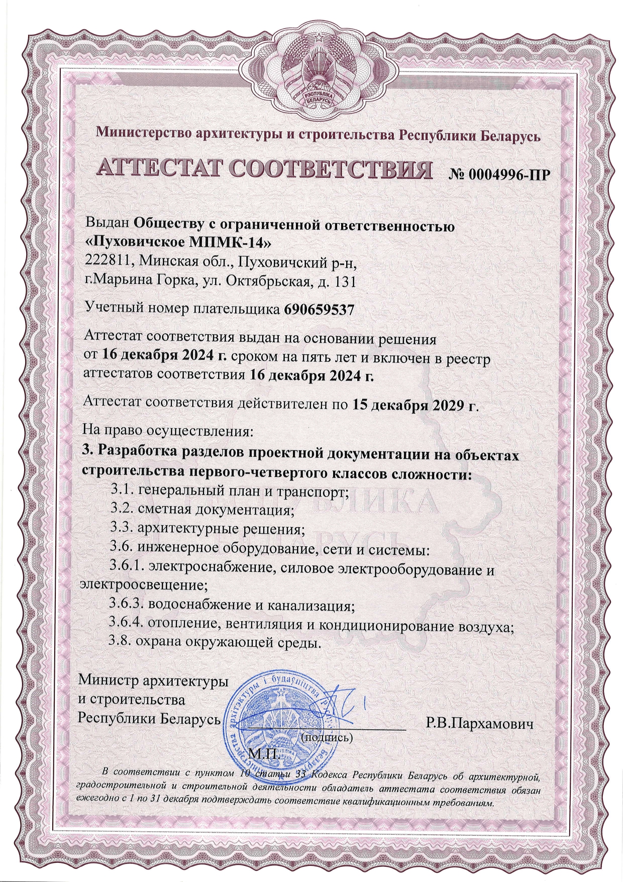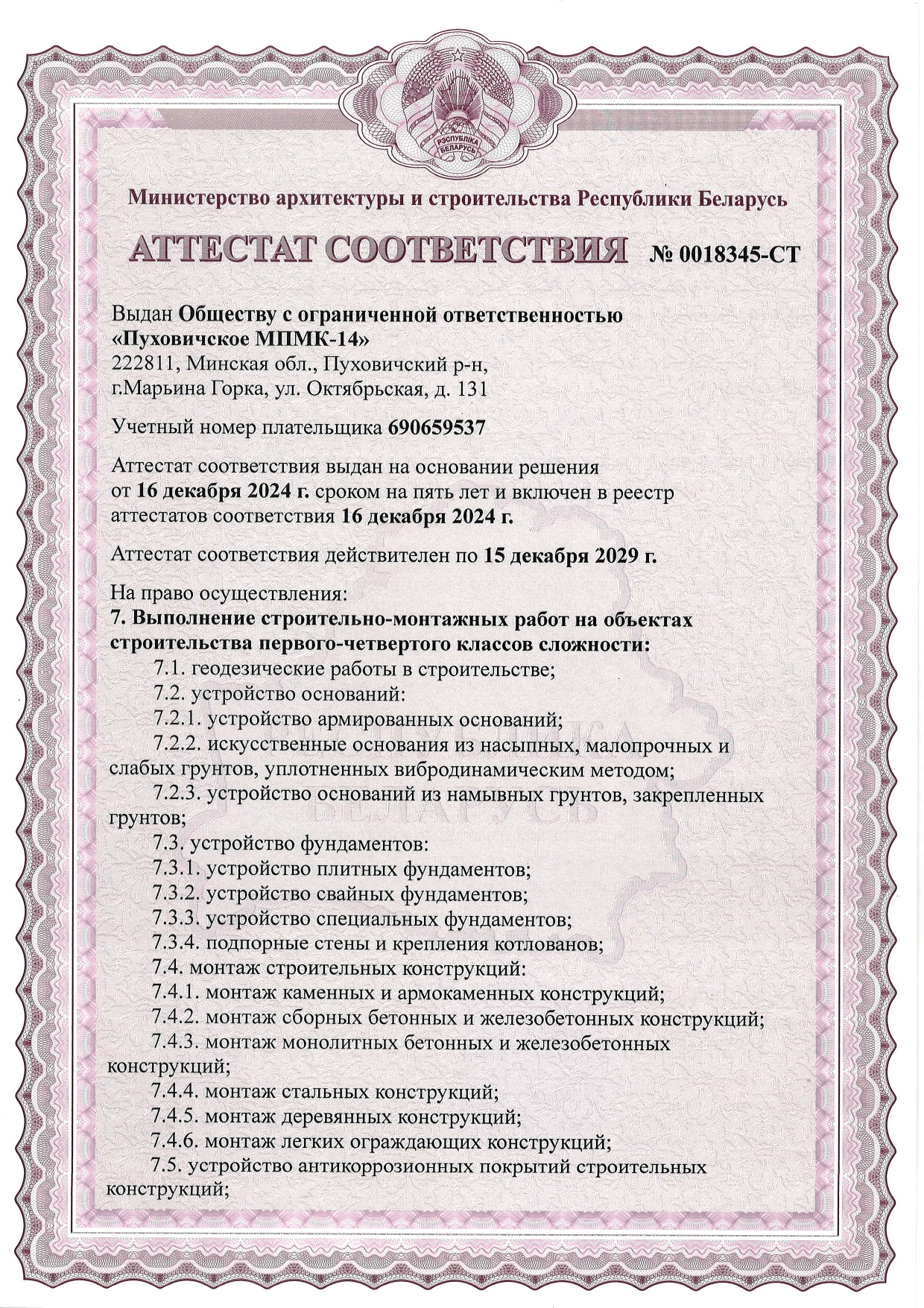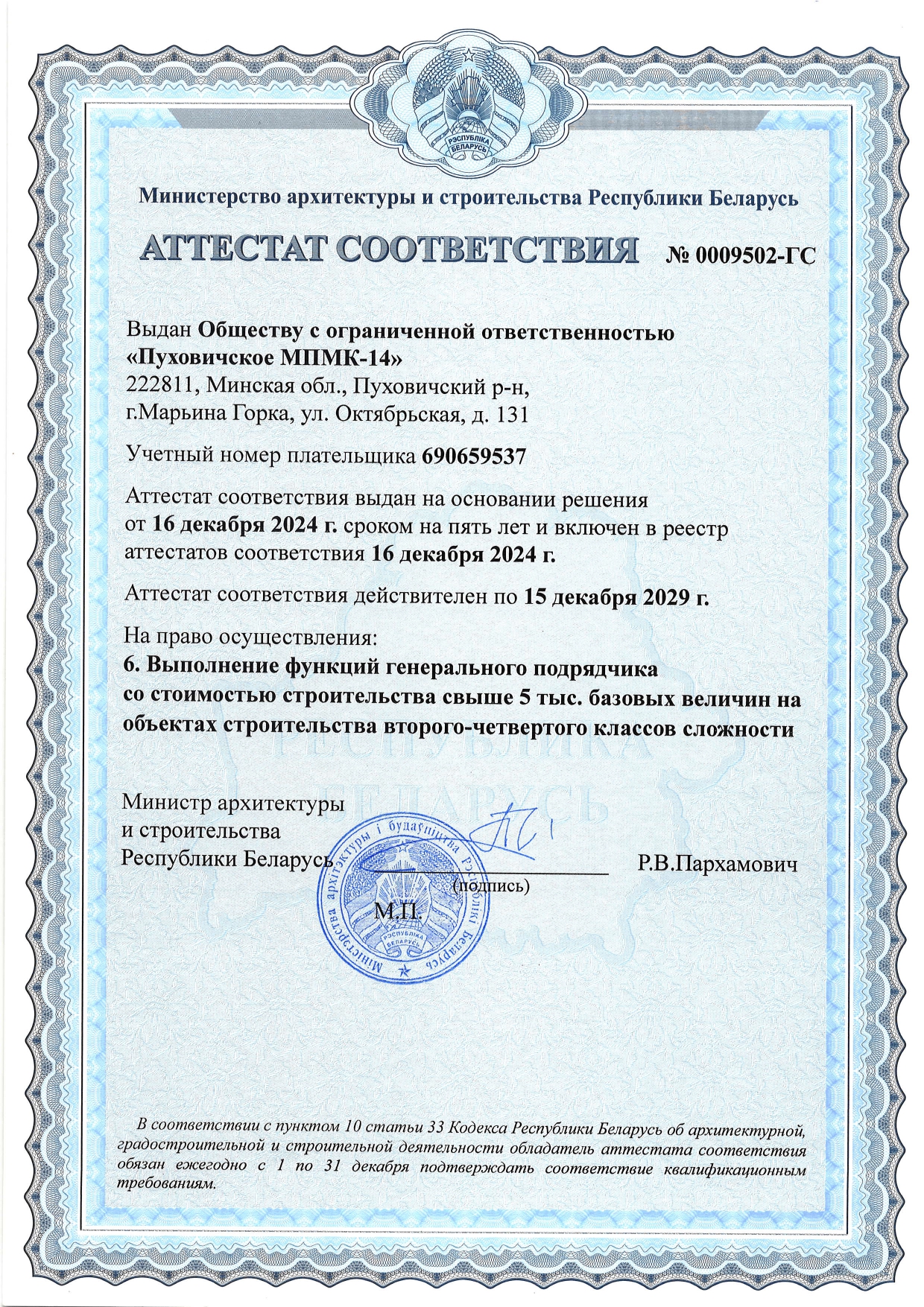 Сферы деятельности компании включают в себя полный спектр работ по созданию и эксплуатации объектов недвижимости. Растущие объемы строительства, беспрекословное исполнение всех взятых на себя обязательств и высокая социальная ответственность сделали ООО «Пуховичское МПМК-14» одним из надежнейших застроищиков на белорусском рынке недвижимости.